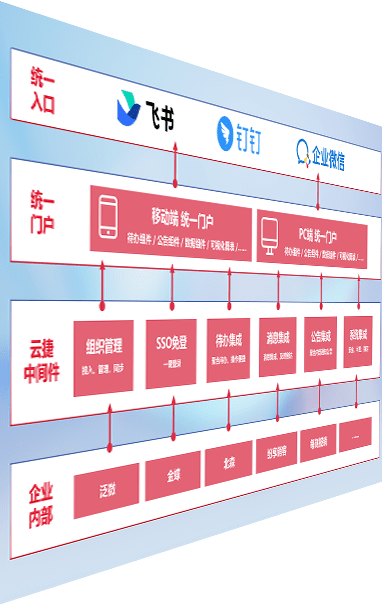 对协作平台提供支持服务,,,支持企业应用与协作平台对接,,,包含组织同步、、、、消息集成、、待办集成等。。。。支持目前主流的协作平台:钉钉、、、、企微和飞书。。。。